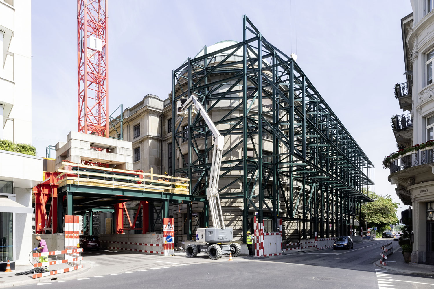 In den Jahren 1930 bis 1932 wurde im Zuge der Umnutzung der Börse in ein Geschäftshaus das Tragwerk grösstenteils umgebaut und die Natursteinfassade komplett umgestaltet. Im Rahmen des aktuellen Umbaus wird die bestehende Tragkonstruktion der oberirdischen Geschosse bis auf die denkmalgeschützte Natursteinfassade rückgebaut und neu aufgebaut sowie um zwei Geschosse aufgestockt. Als weitere Baumassnahme werden im Schutz einer Schlitzwand, ergänzend zum bestehenden Untergeschoss, zwei zusätzliche Untergeschosse erstellt.